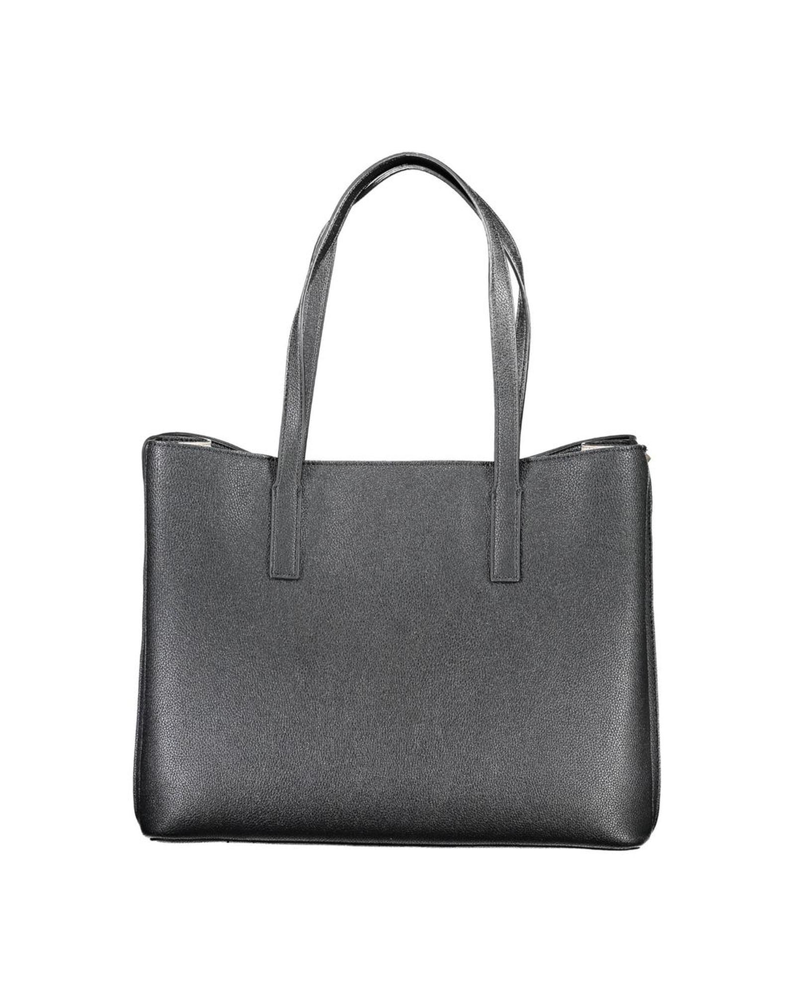 This women’s handbag features a sleek black polyethylene design with practical storage options and stylish contrast details. It is designed to be functional and fashionable, suitable for everyday use.