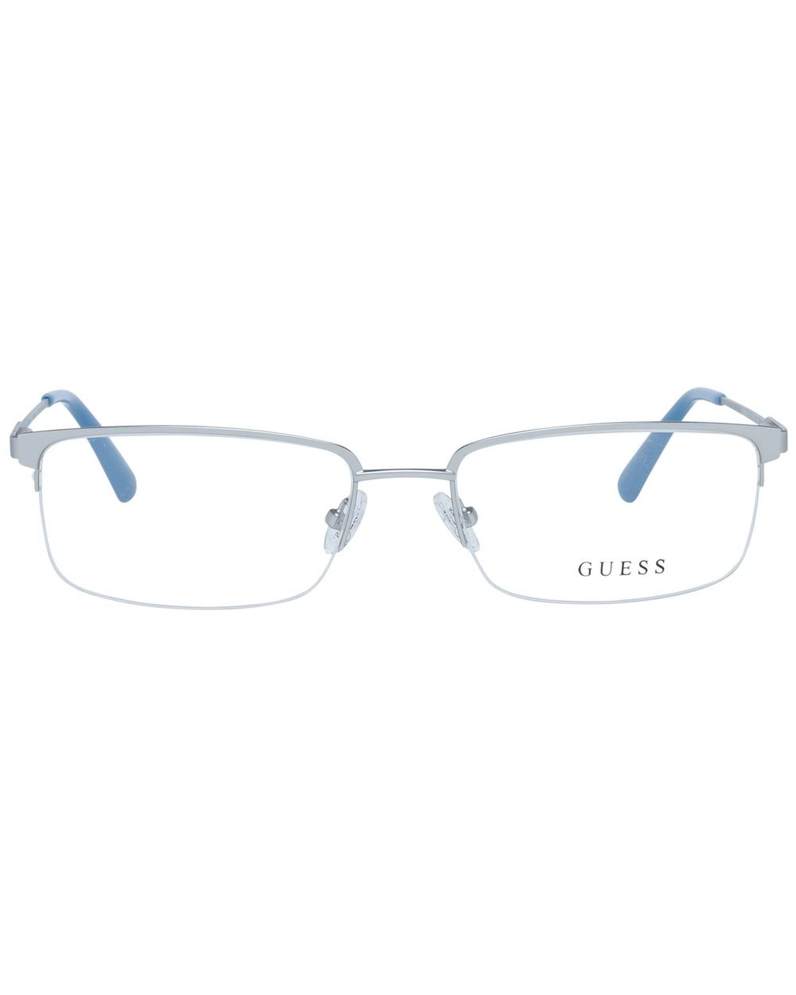 This pair of men’s optical frames features a sleek silver design with a classic rectangle style. Crafted from durable metal, these frames are lightweight and comfortable for everyday wear. The included demo lenses are made of plastic, providing a clear view and easy customization. Designed with a half rim style and spring hinges, these frames combine style and functionality for a versatile look.