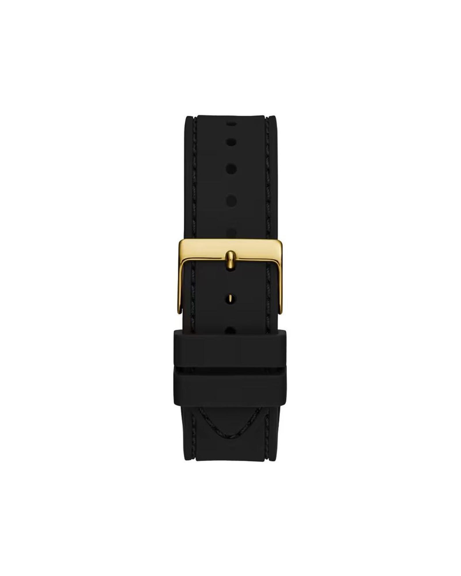 This women’s watch features a sleek black silicone strap and a stylish golden dial, combining modern design with practical functionality. It is equipped with a precise quartz movement and an analog display, making it suitable for everyday wear. The watch is protected by mineral glass and has a comfortable buckle closure for secure fitting.