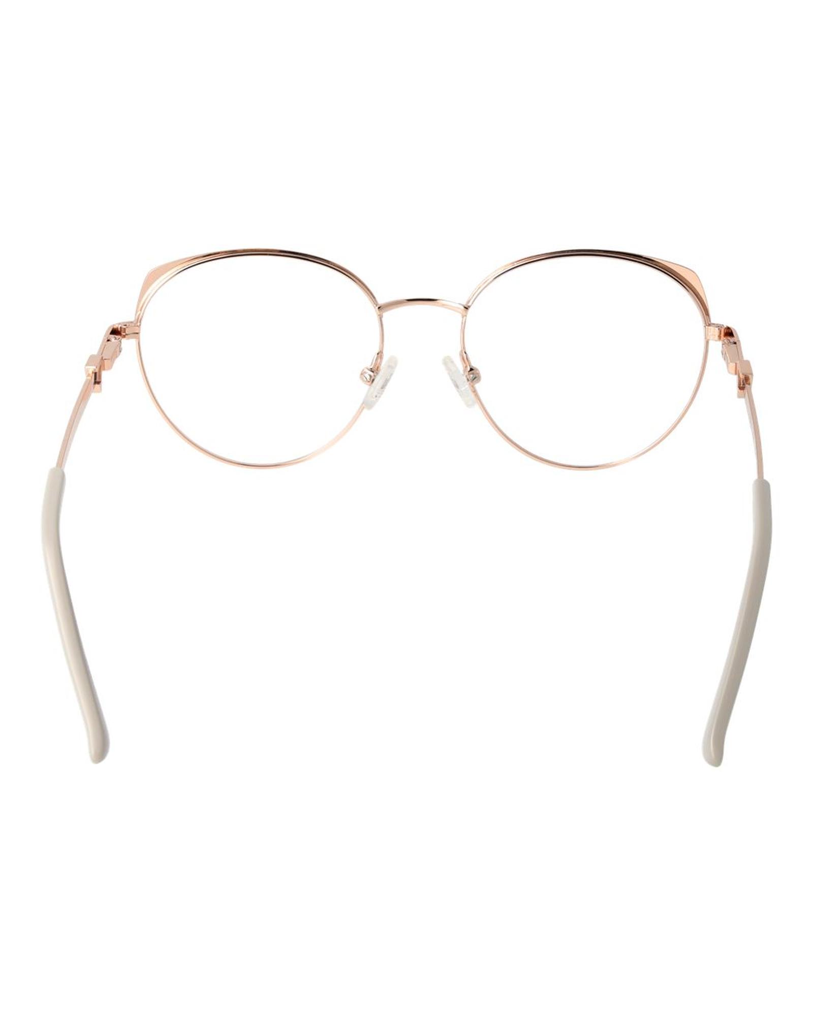 This pair of optical frames features a stylish round design with a rose gold finish, suitable for women. Made from durable metal, these frames combine elegance with comfort, making them a versatile accessory for everyday wear. The included demo lenses are made of plastic, providing a lightweight feel and clear vision. Designed with a full rim style, these glasses are both fashionable and functional.
