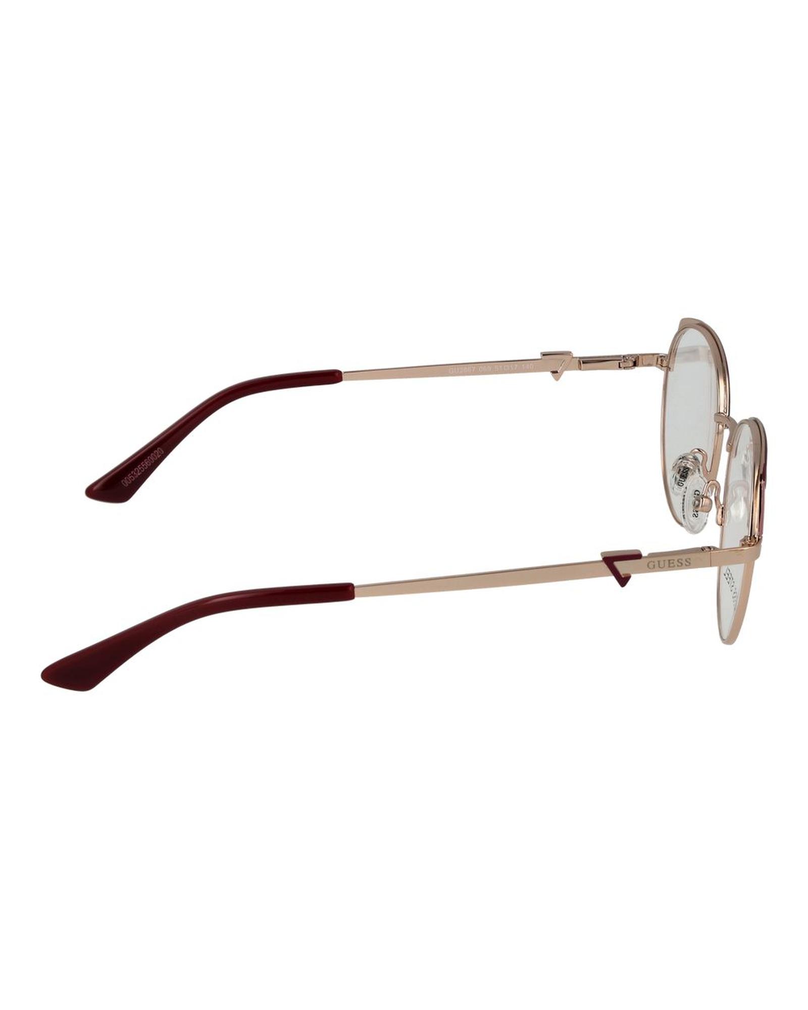 These women’s optical frames feature a stylish round design with a rose gold metal frame, offering a fashionable and elegant look. The frames are lightweight and comfortable, suitable for everyday wear. They come with a branded case for protection and portability.