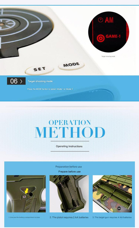 - Target shooting alarm deactivates by hitting the bullseye with the infrared gun