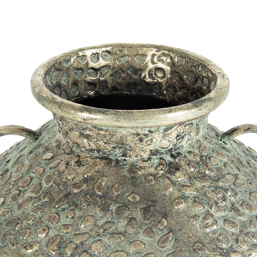 This hammered urn features an antique gold finish, adding a touch of elegance and sophistication to your home decor. Its classic design and versatile color make it suitable for various interior styles, serving as a stylish accent piece.