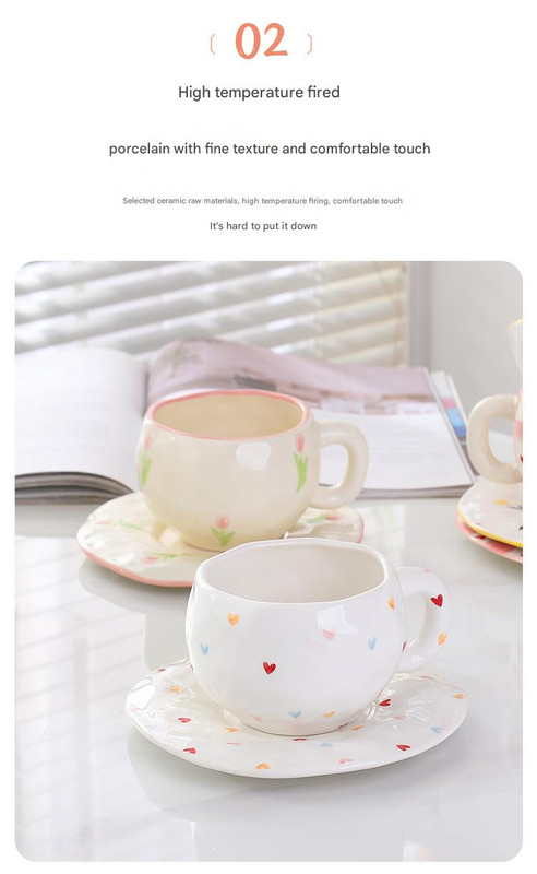 This hand-painted ceramic coffee cup and saucer set adds a charming touch to your tea or coffee experience. Made from high-quality ceramic, it features a delicate floral pattern that offers a vintage-inspired aesthetic. The set is suitable for daily use, casual gatherings, or afternoon tea, combining style with practicality.