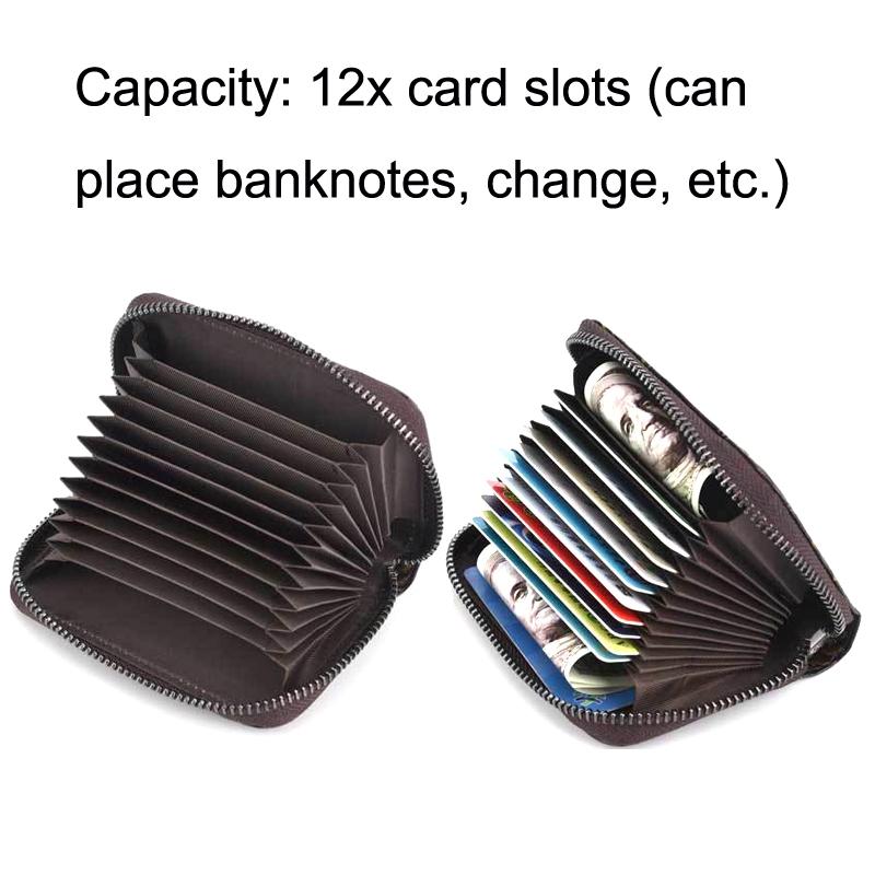 This hand-painted leather card holder combines style and functionality with a high-quality cowhide exterior and a sleek embossed design. It offers multiple compartments for organized storage of cards, banknotes, and coins, making it a practical accessory for everyday use.