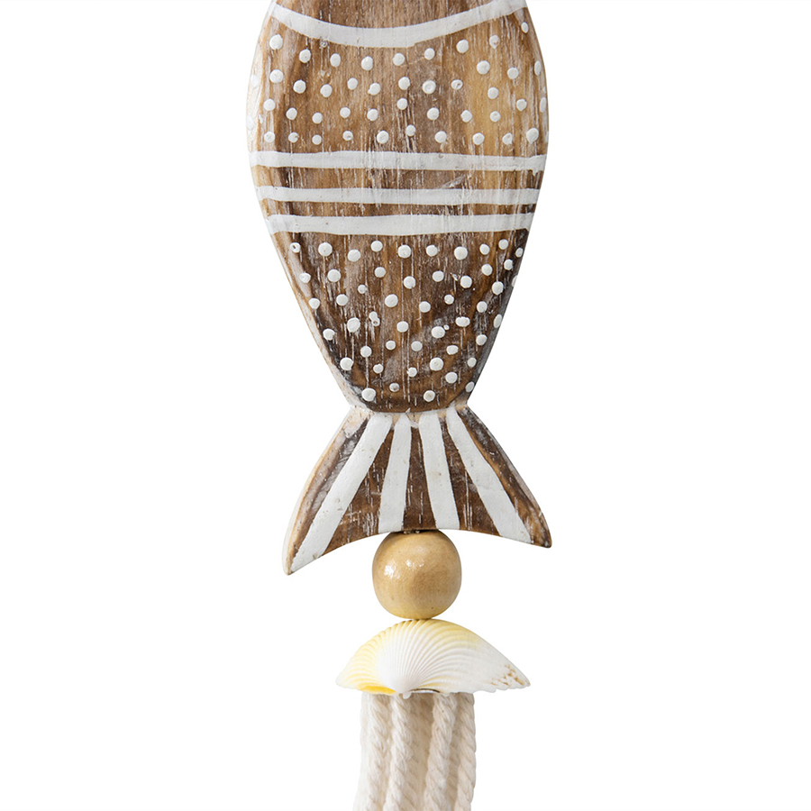 This handcrafted wall art features a driftwood design with a fish motif, adding a rustic and vintage touch to your home, patio, or garden. Its unique design and natural materials make it a charming decorative piece suitable for various outdoor and indoor spaces.