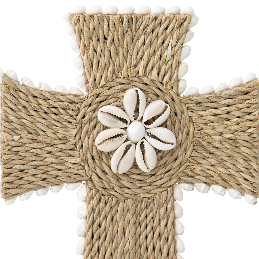 Handcrafted Shell & Broad Weave Wall Hanging Cross 32x23cm