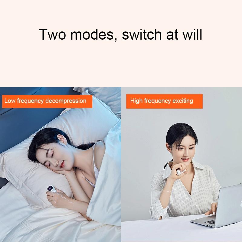 This handheld device is designed for home physiotherapy and sleep improvement through microcurrent pulse therapy. It offers two modes for targeted treatment, including low frequency decompression and high frequency excitation. The device features adjustable settings to cater to different user needs and provides a non-invasive method to stimulate nerve clusters for better sleep quality.