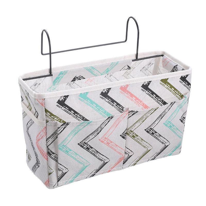 This bedside storage caddy is designed to help organize small essentials conveniently and efficiently. Made from durable and eco-friendly canvas, it features a sturdy wrought iron hook for easy hanging on various surfaces. Its lightweight and compact design make it suitable for use in dormitories, bedrooms, hospitals, and other settings, providing ample storage without occupying much space.