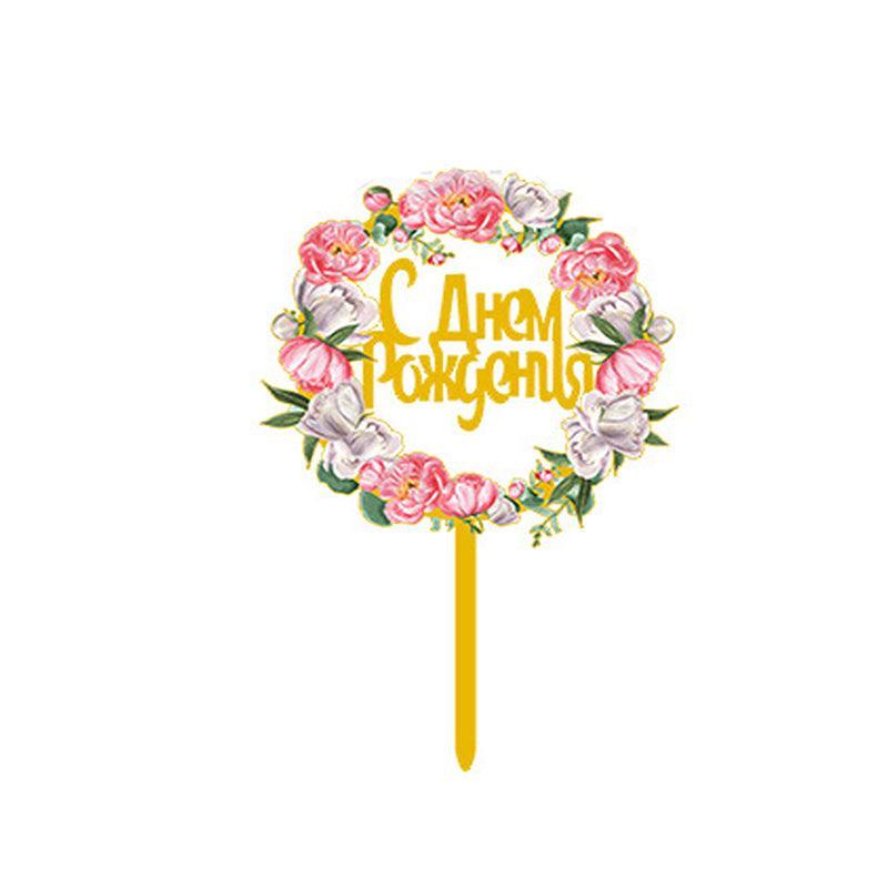 Happy Birthday Anniversary Wedding Cake Flowers Topper Acrylic Party Decorations – NO.12