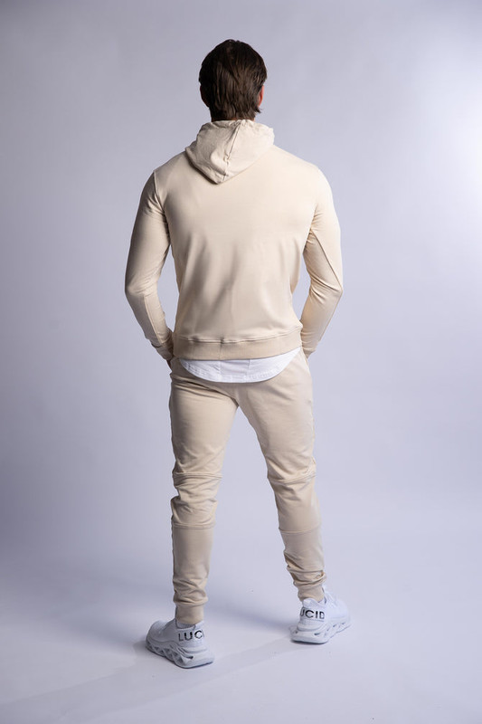 This slim fit terry hoodie in beige is designed for comfort and performance, making it suitable for active individuals. Crafted with high-quality materials, it offers flexibility, durability, and breathability to support various workouts and daily activities.