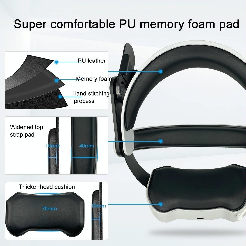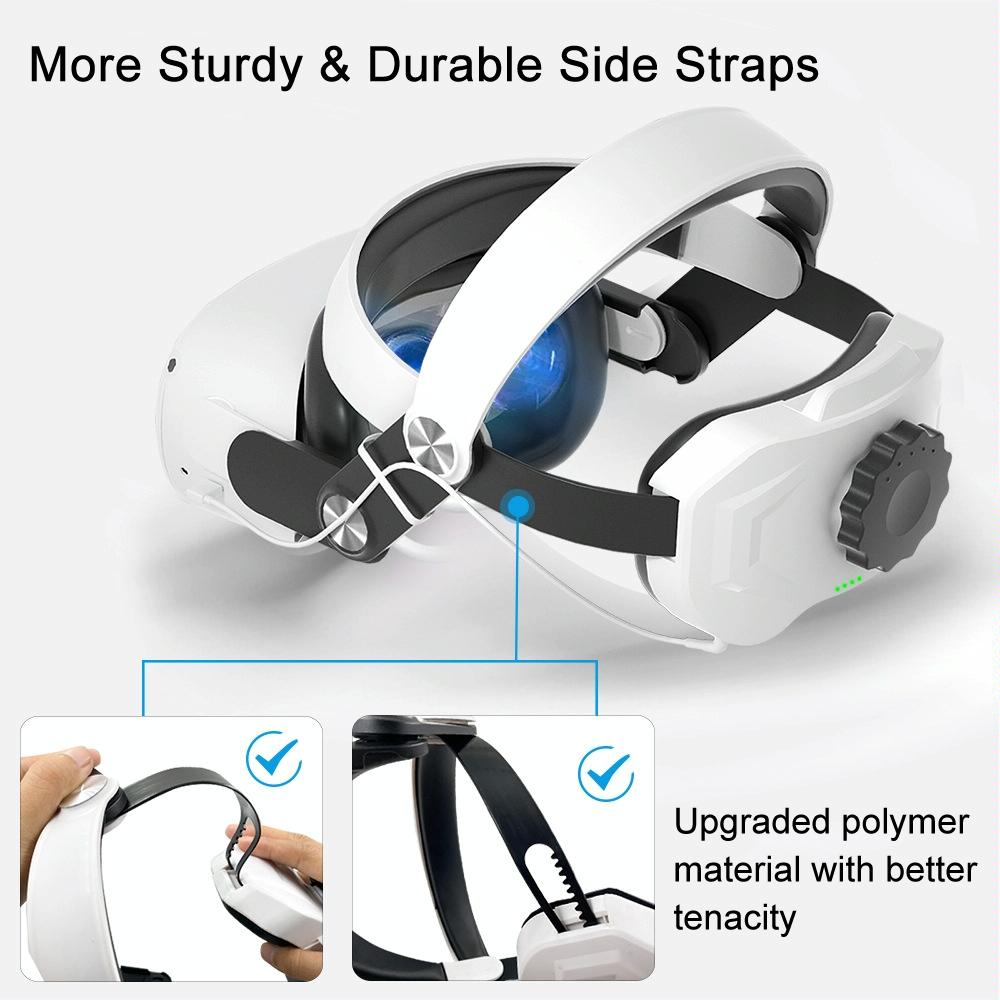This head strap power bank is designed to enhance your virtual reality experience by providing an extended power supply. It features a built-in rechargeable battery, adjustable and pressure-free wearing design, and upgraded side straps for improved durability. The soft surface material ensures comfort during prolonged use, and fast charging capabilities allow quick recharging. Its lightweight construction makes it easy to wear for extended periods.
