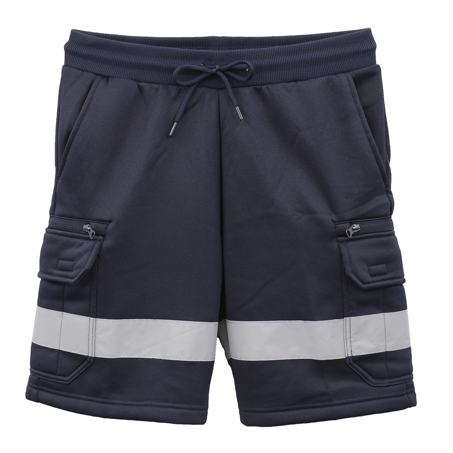 Hi Vis Fleece Work Cargo Shorts w Reflective Tape Workwear Tradie Utility Pants, Navy, S
