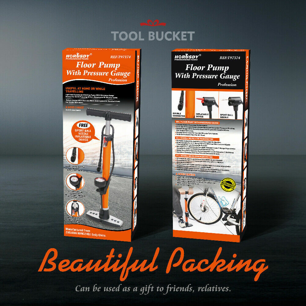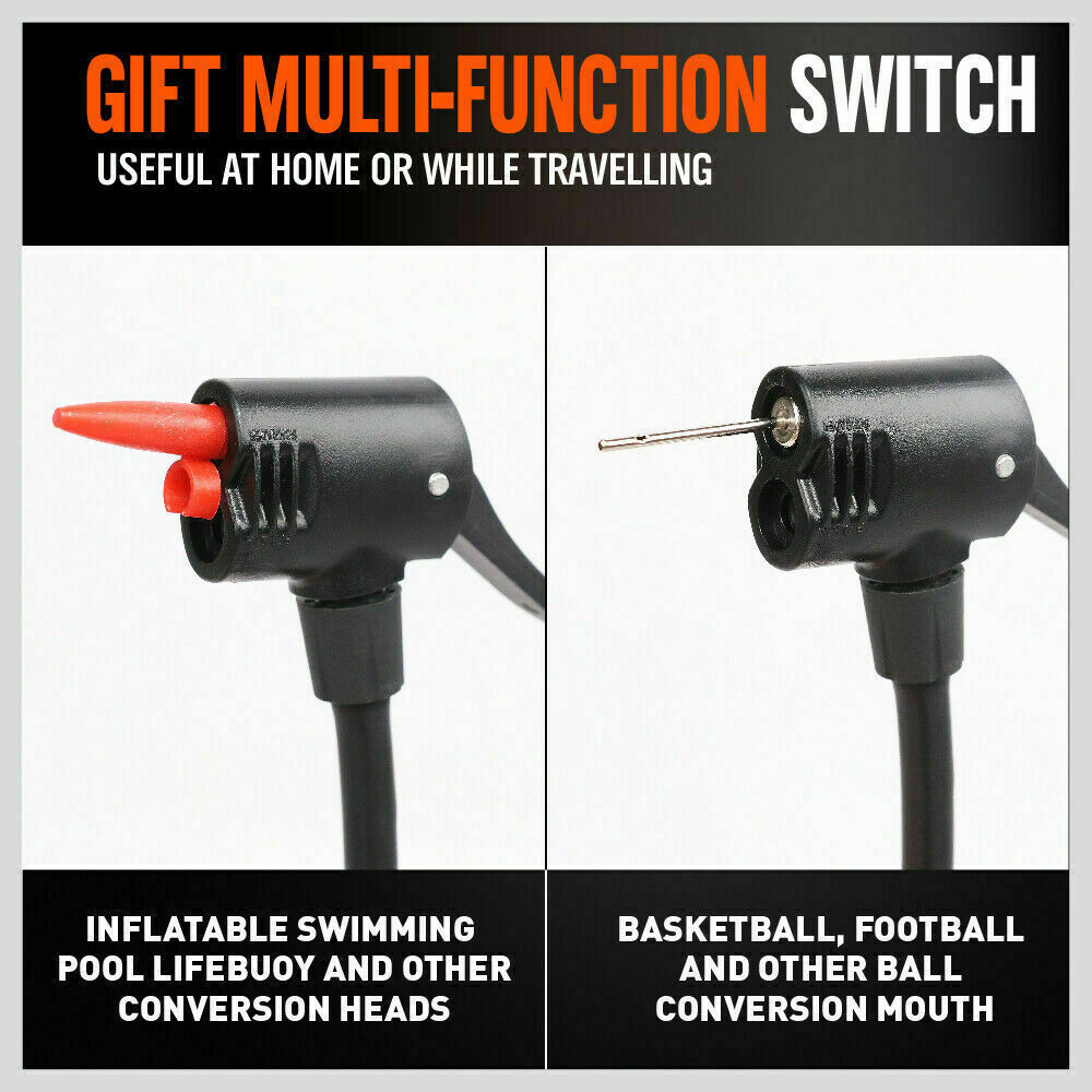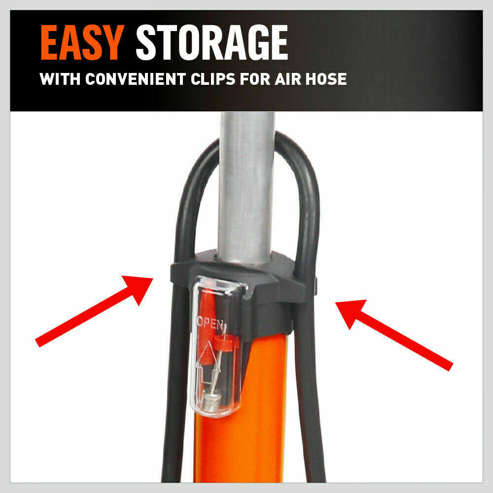High Pressure Air Pump Bicycle Bike Alloy Floor Air Gauge Ball Balloon Nozzles