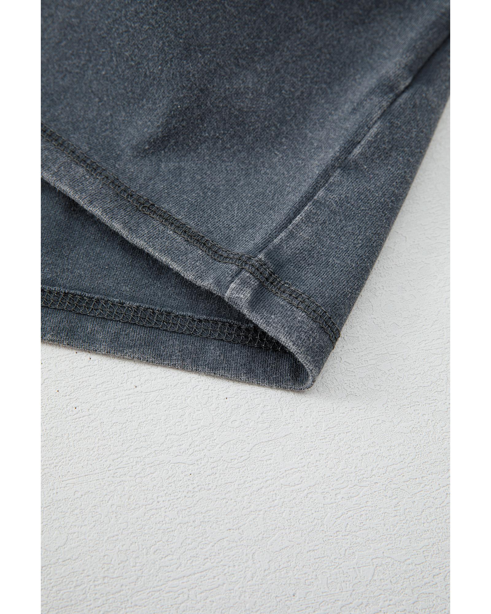 Dark Grey Ribbed Zip Up Front Drawstring Hoodie - M