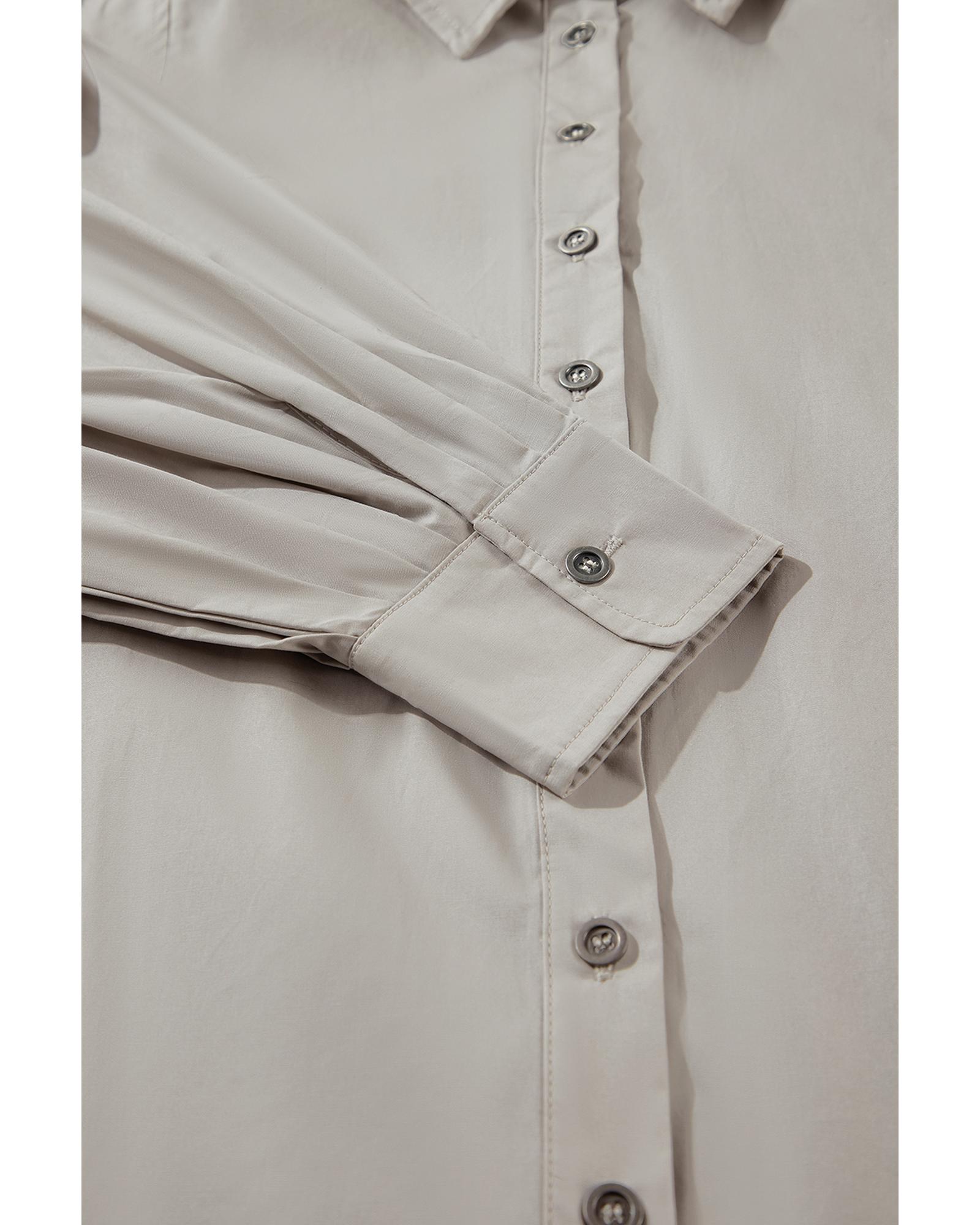 Light French Beige Oversized Leopard Print Balloon Sleeve Casual Shirt - S