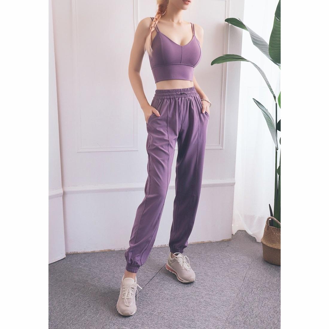 High Waist Drawstring Fitness Pants Black Size L – Smoke Purple M