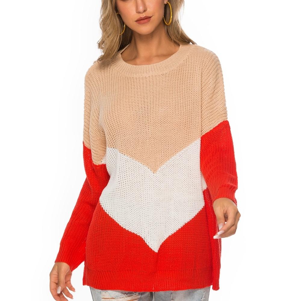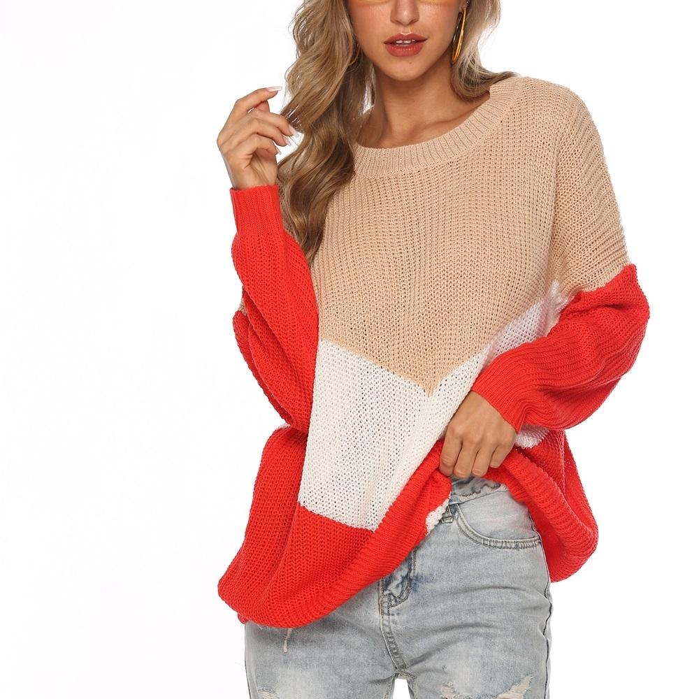 Hinged Knit Net Stitching Loose Sweater Round Neck Bottoming Shirt For Women Red – S