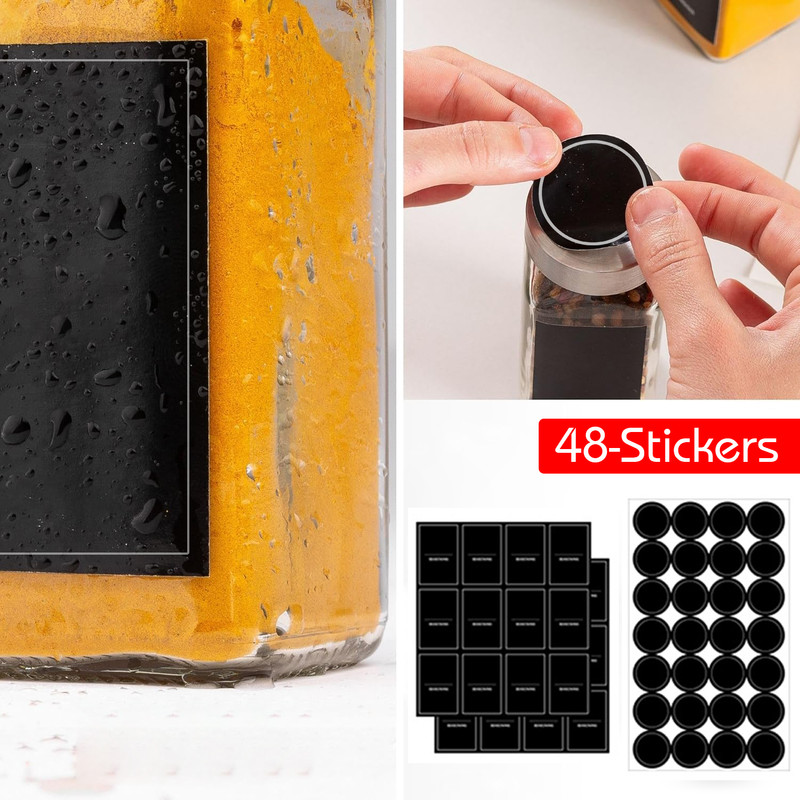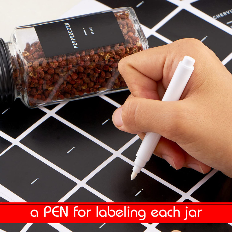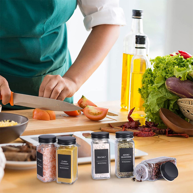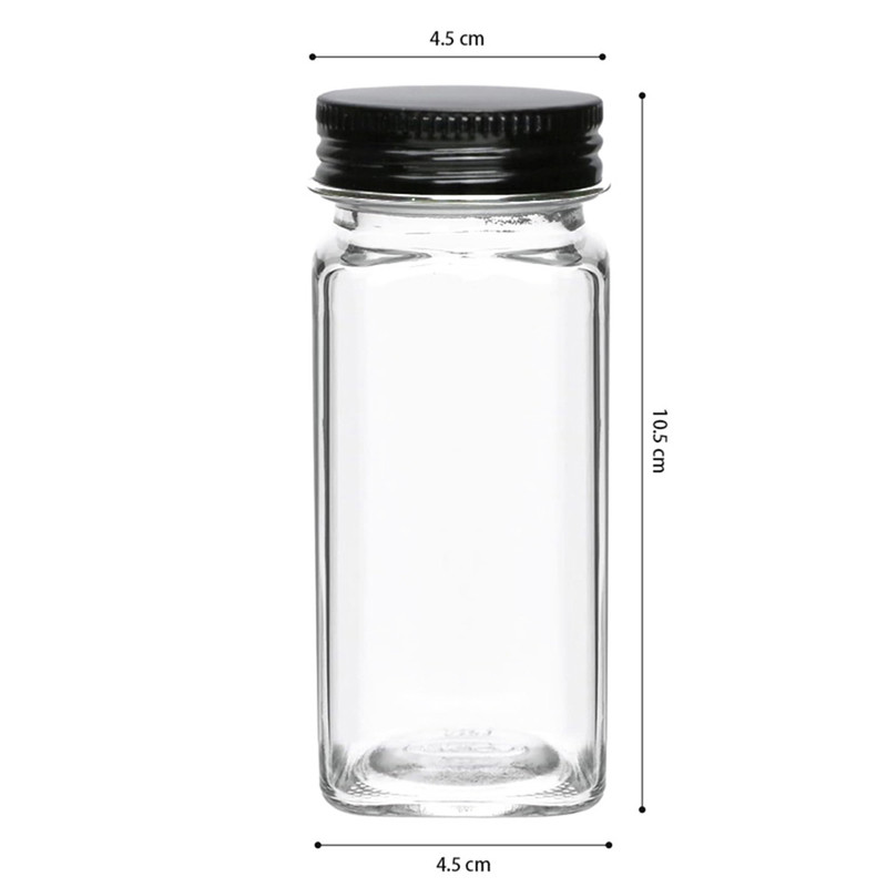 - Set of 12 clear glass spice jars with a capacity of 120 ml each