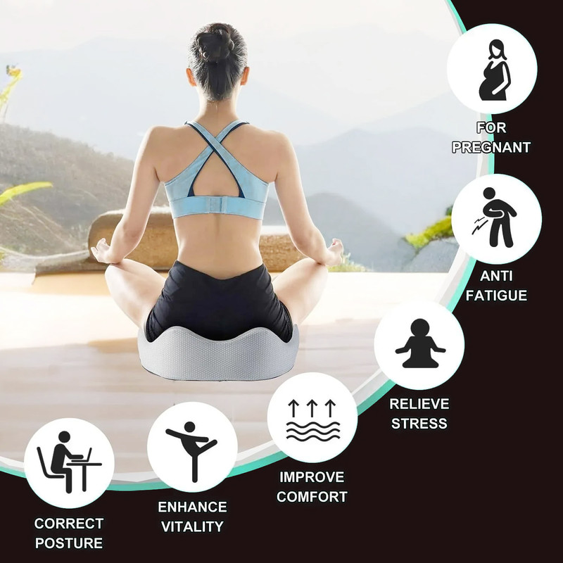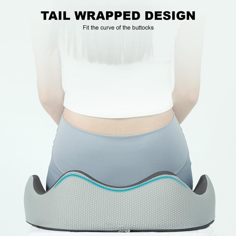 This ergonomic memory foam seat cushion is designed to enhance comfort and support during long periods of sitting at home, in the office, or while traveling. Made from high-density memory foam, it conforms to your body shape while maintaining its structure over time. The contoured design features raised side and back supports that help align the lower back, tailbone, and thighs, reducing pressure and promoting a balanced sitting posture. The soft, breathable cloth cover is removable for easy cleaning, and the lightweight construction allows for easy portability between different seating environments.