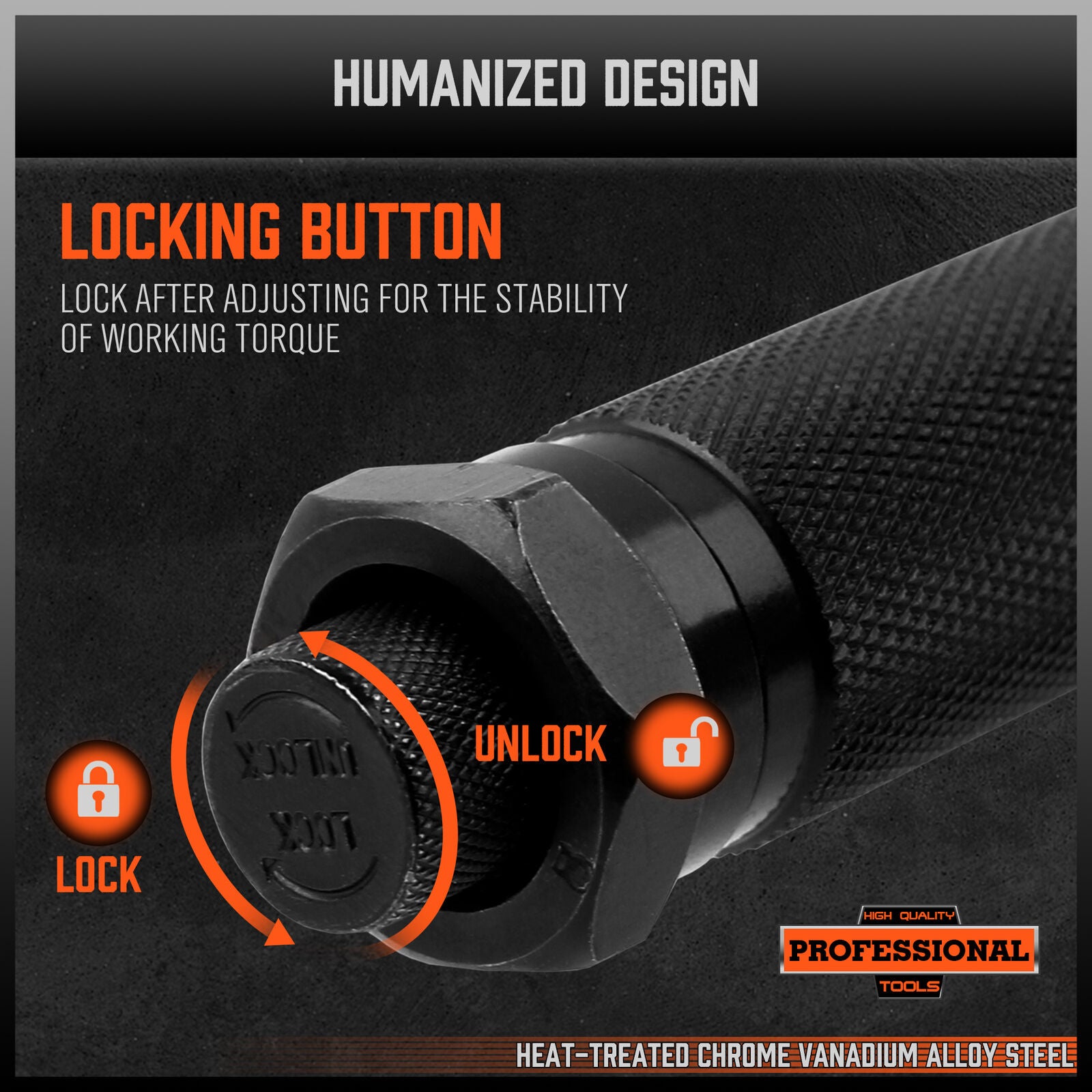 - Reinforced ratchet gear head made from hardened, heat-treated Chrome Vanadium alloy steel
