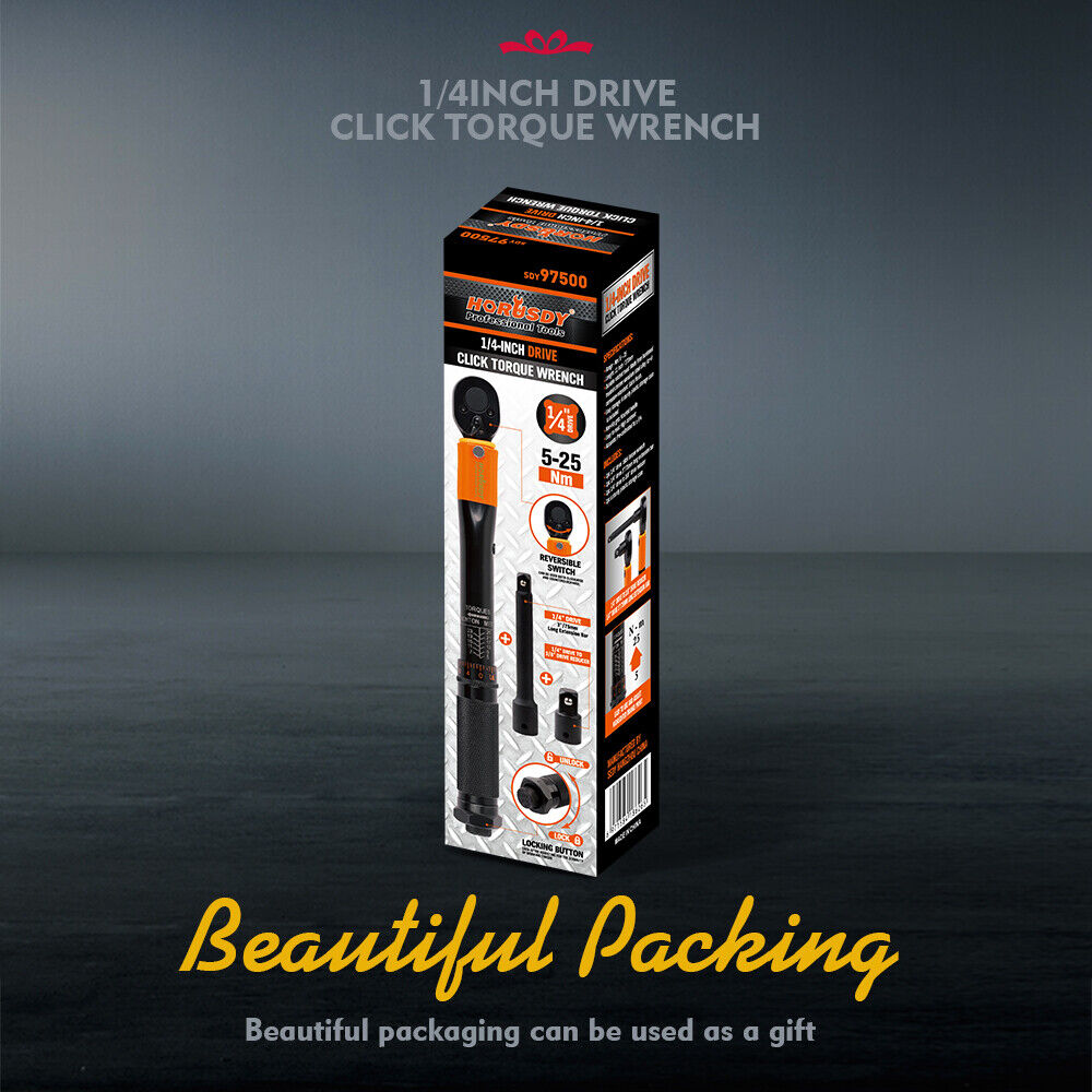 HORUSDY 3Pc 1/4″ Drive Click Torque Wrench Ratchet Socket with Adaptor Extension