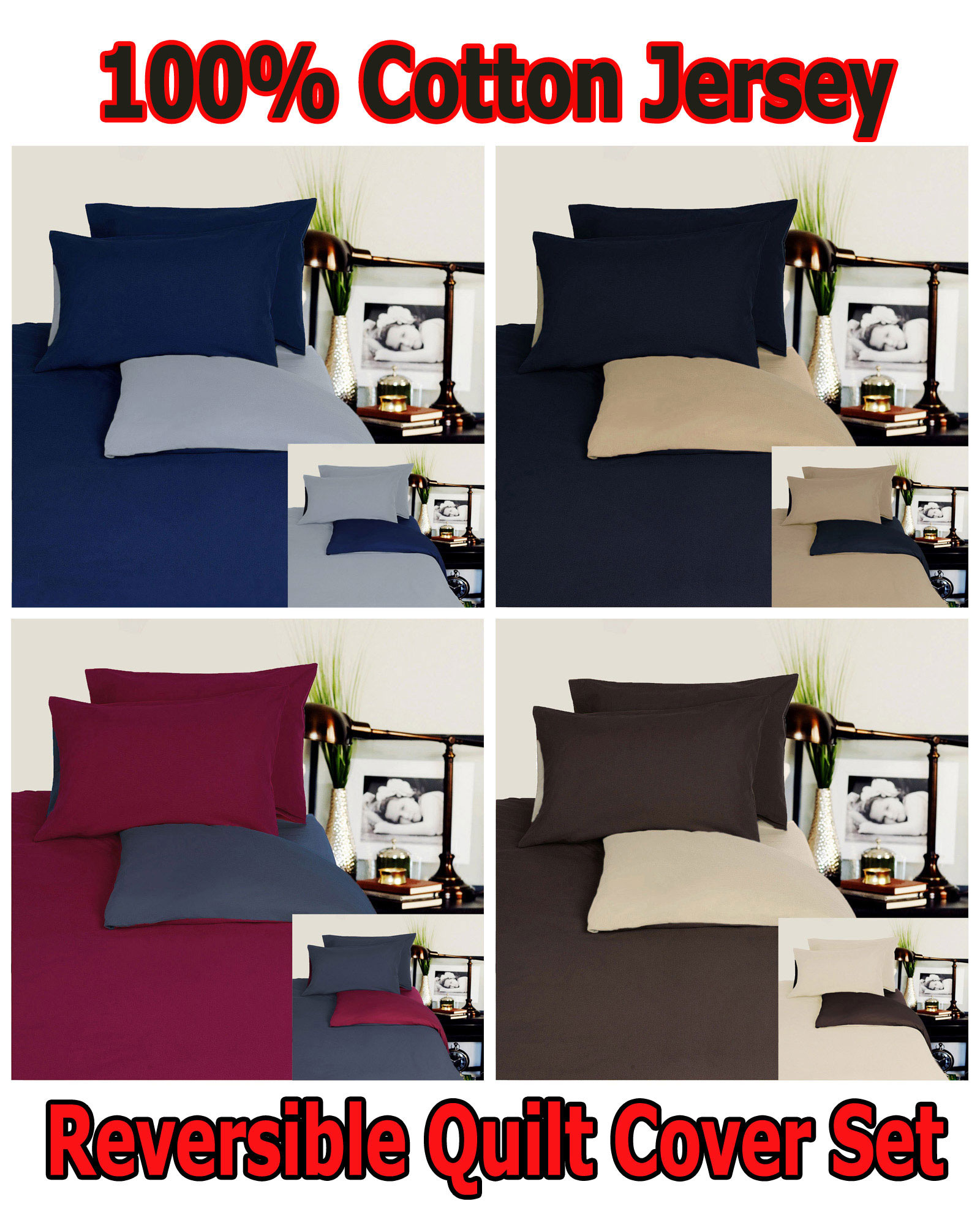 This reversible quilt cover set is made from soft cotton jersey knit, offering a comfortable and versatile bedding option. Its two-tone design allows you to easily change the look of your bed by flipping the cover, providing both style and practicality for year-round comfort.
