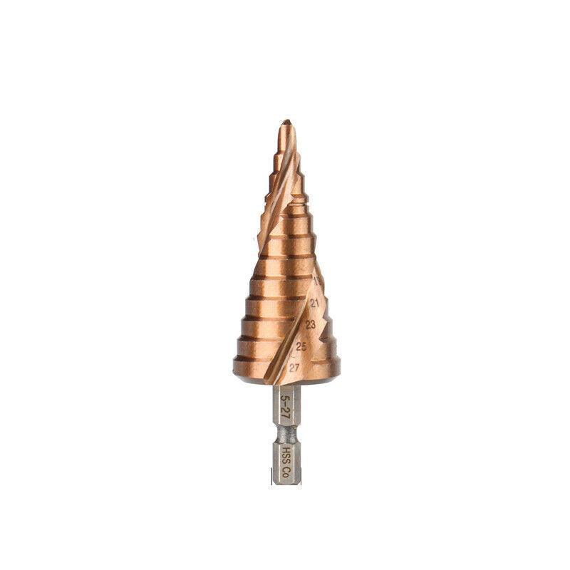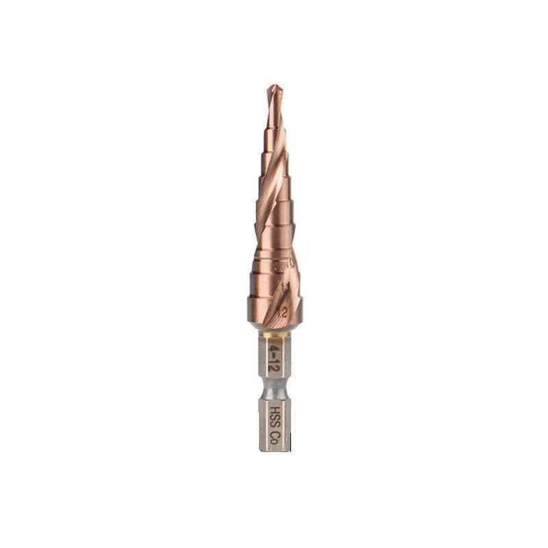 This product is a high-hardness cobalt step drill bit designed for drilling in tough materials such as stainless steel and hardened steel. It offers multiple size ranges for versatile drilling applications, making it suitable for both professional and DIY use.