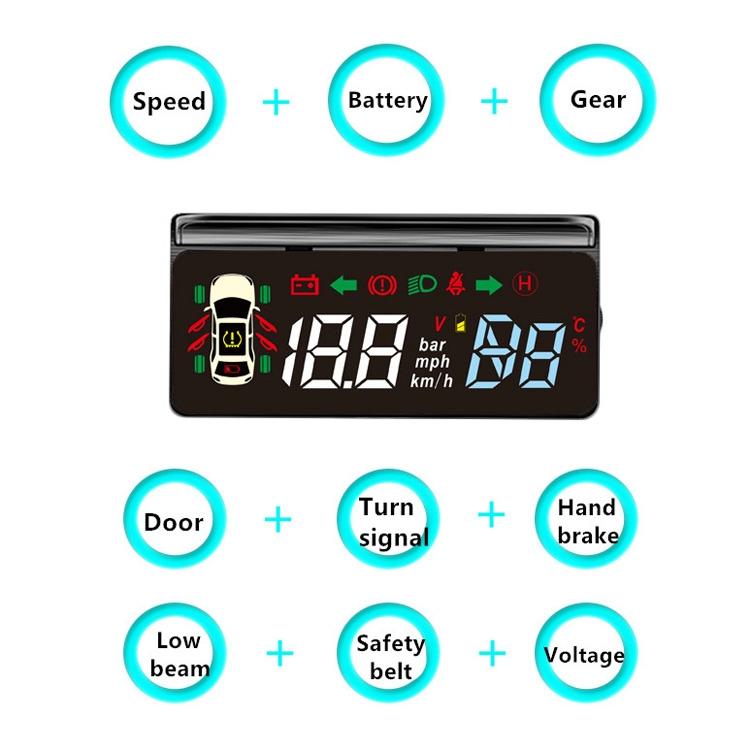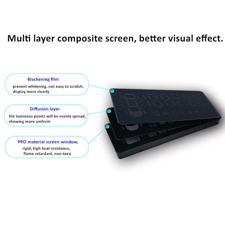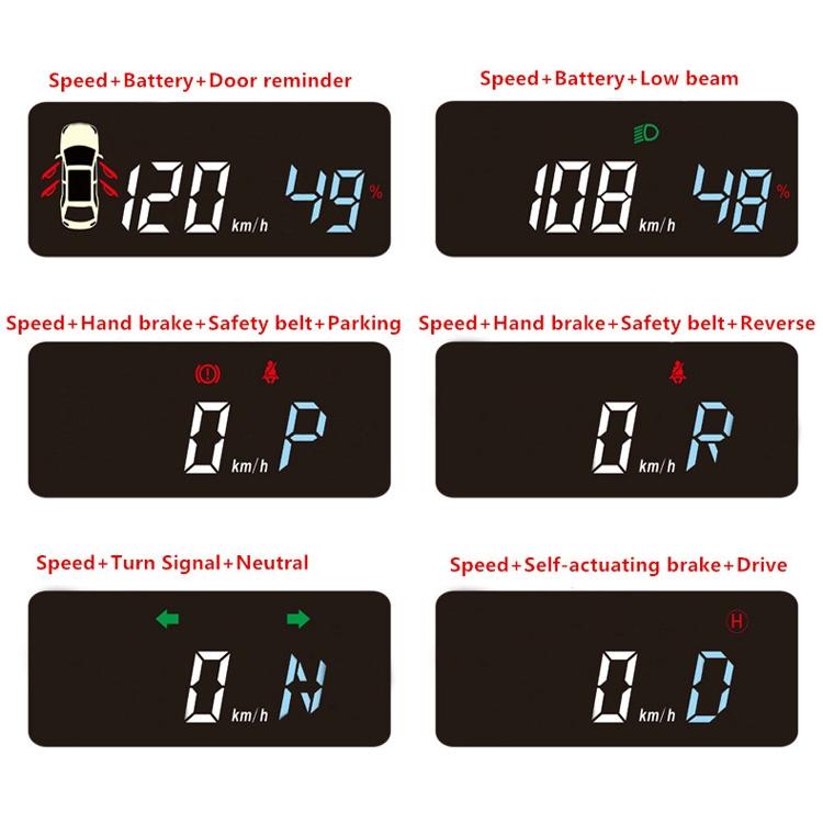 This product is a heads-up display designed for Tesla Model 3, providing essential driving information to enhance safety and convenience. It offers real-time data on speed, voltage, mileage, gear position, and remaining battery percentage. Additional features include door lights for better visibility, automatic brake indicators, speeding alarms, and safety alerts for low voltage, low battery, handbrake, low beam, and seat belt status.