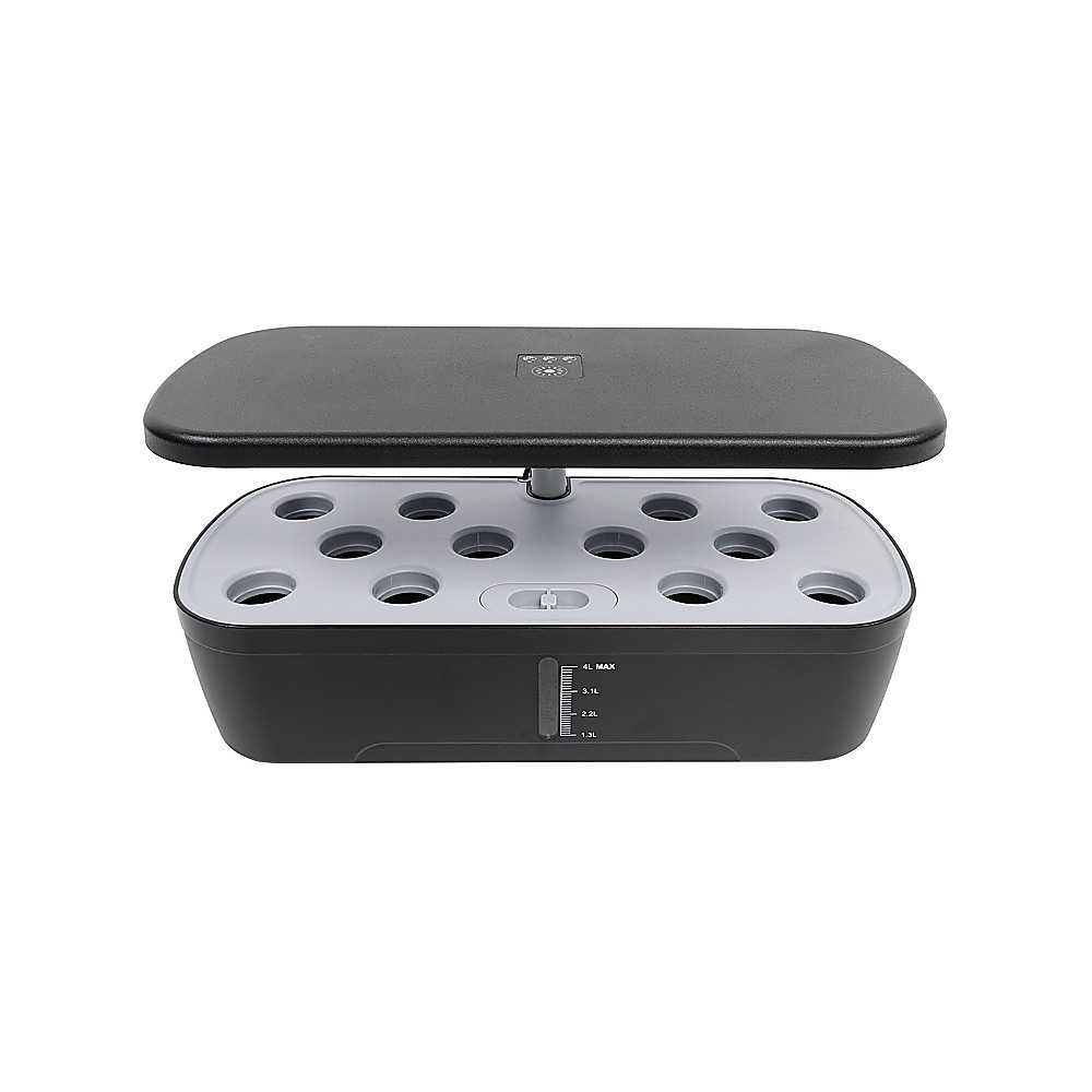 - 12-pod smart hydroponic system that accelerates plant growth compared to traditional soil methods