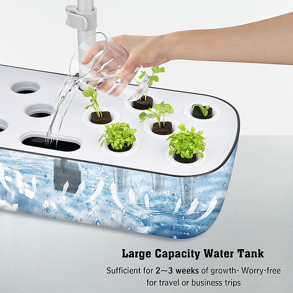 - Large capacity water tank supporting 2-3 weeks of worry-free growth