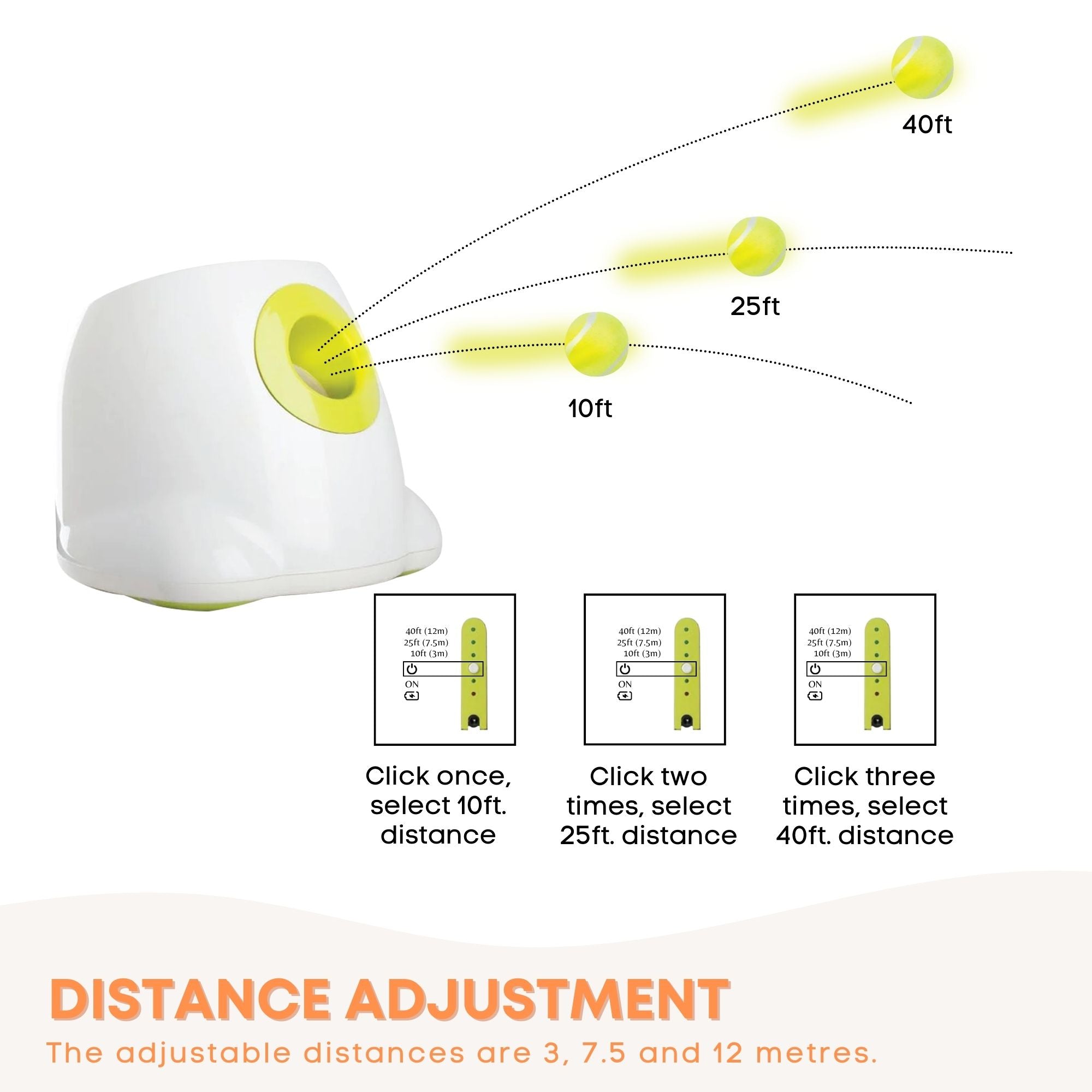 - Includes three standard tennis balls and can operate with batteries or an AC adapter