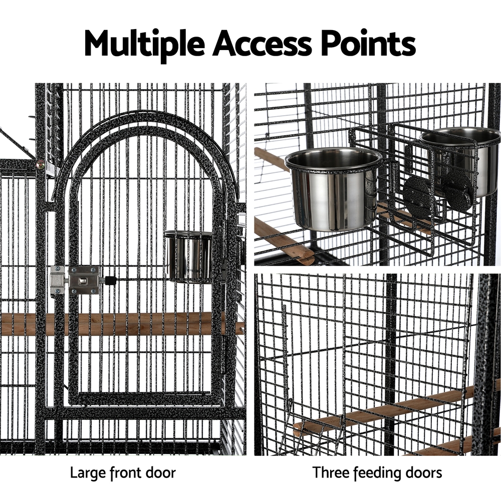 This large bird cage provides a spacious and engaging environment for your feathered friends. It features multiple access points, practical storage options, and built-in play elements to ensure comfort and entertainment for your birds.