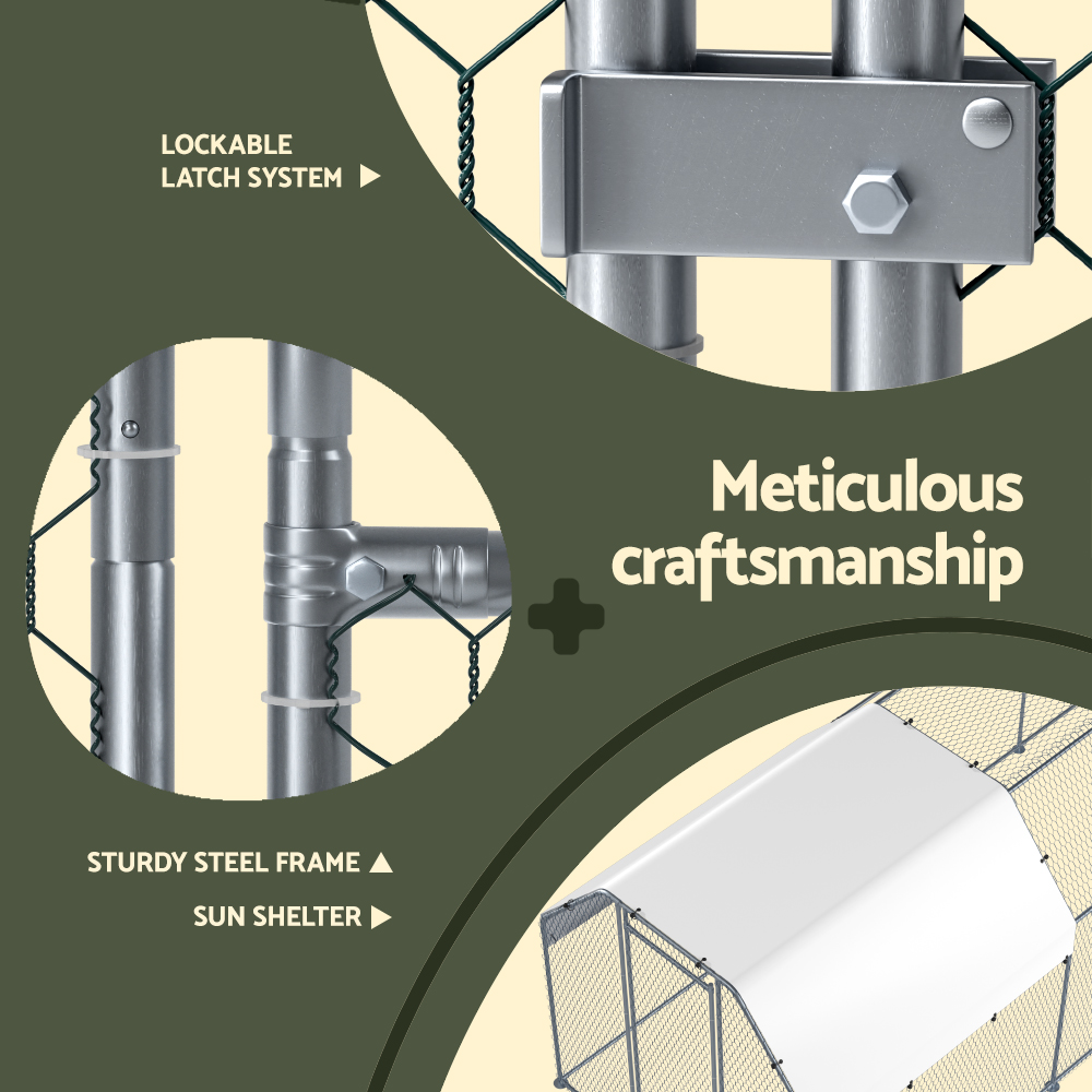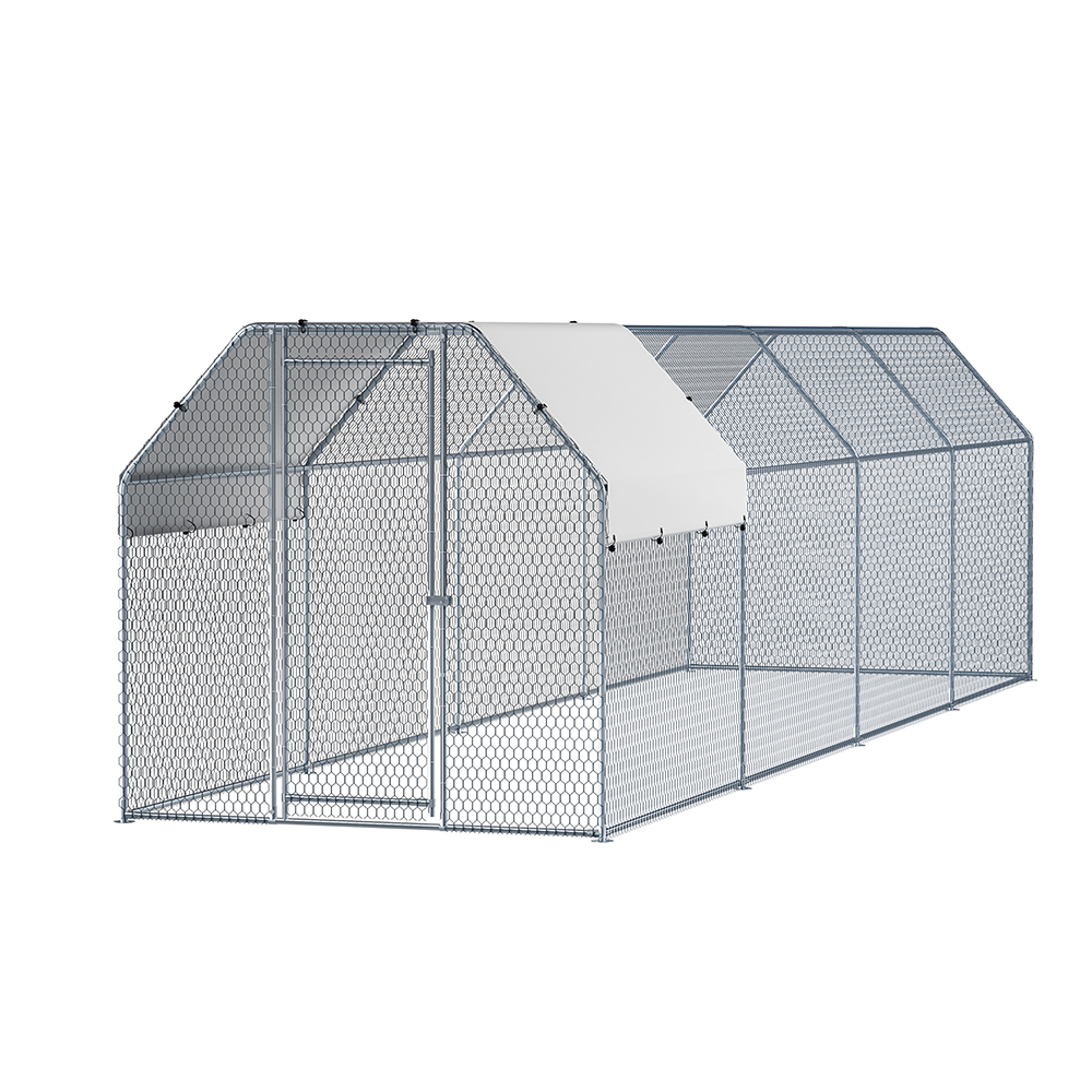 This large pet enclosure provides a safe and comfortable space for chickens, ducks, and geese to rest, sleep, and relax. It features a spacious interior that allows pets to move freely without feeling confined. Constructed from durable galvanised steel with wire sidewalls, it ensures proper airflow and ventilation. The weather-resistant roof offers protection during harsh weather conditions, making it suitable for outdoor use.