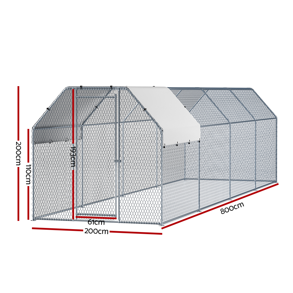 i.Pet Chicken Coop Cage Run Rabbit Hutch Large Walk In Hen House Cover 2mx8mx2m