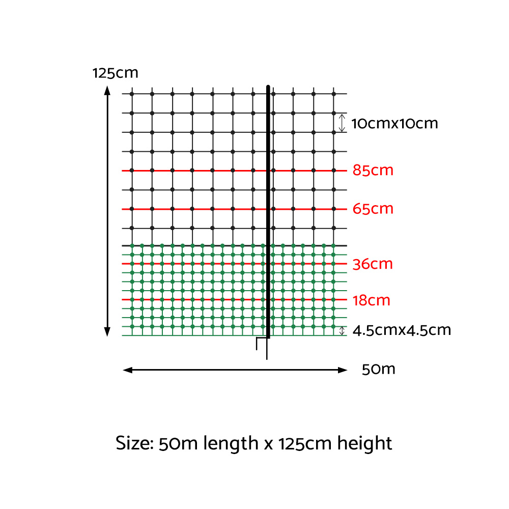 - Electrified wire heights from ground: 180mm, 360mm, 650mm, 850mm