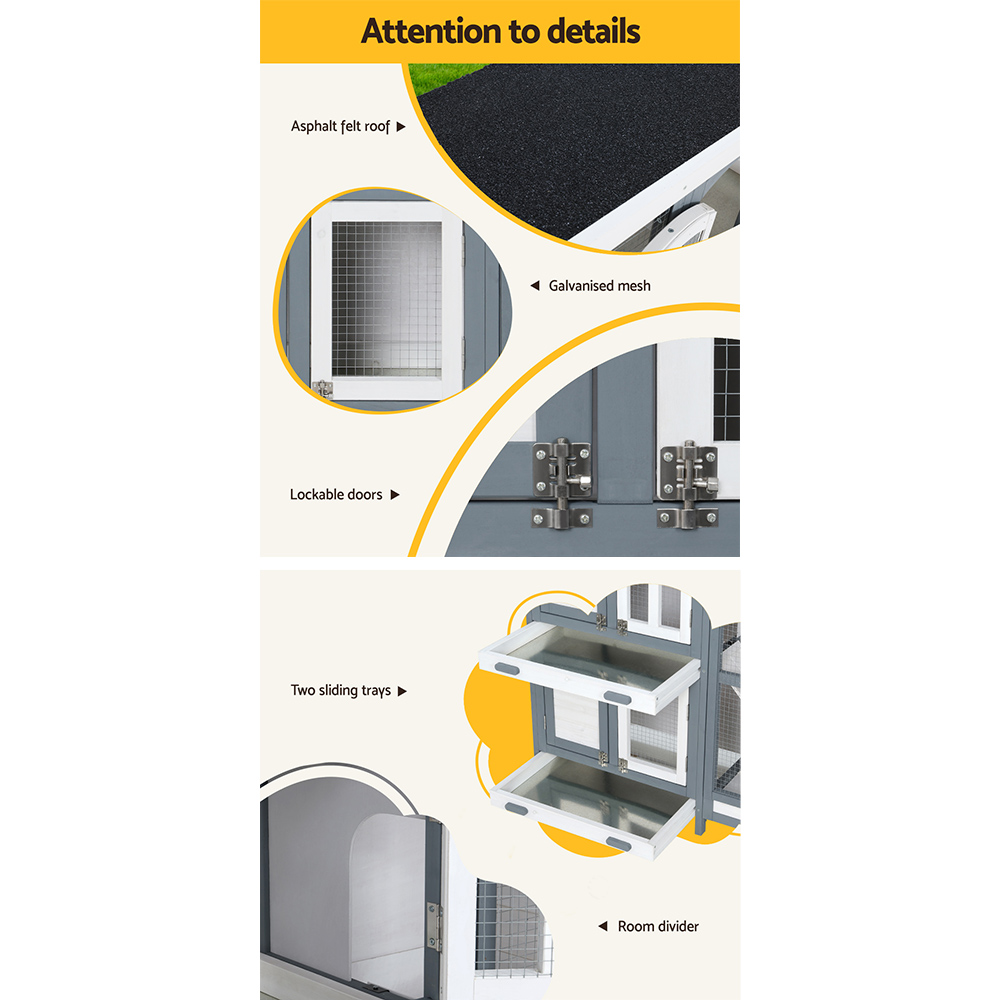 i.Pet Rabbit Hutch Chicken Coop 98cm x 45cm x 92cm Chicken Coop Large Wooden House Run Cage Outdoor
