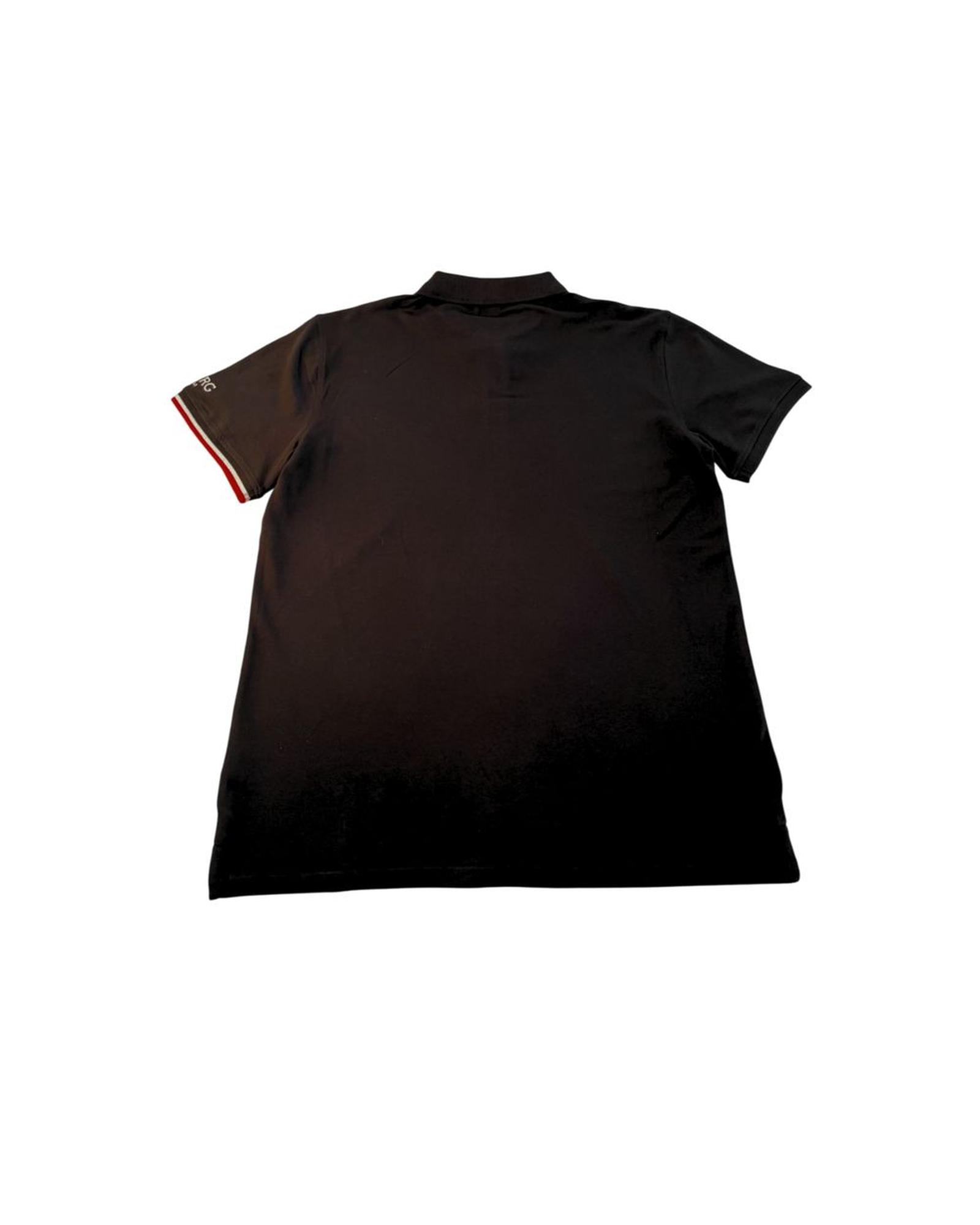 This men’s black cotton polo shirt offers a classic and versatile style suitable for various occasions. Crafted from a comfortable cotton elastane blend, it provides a good fit and durability. The shirt features a short sleeve design with a logo on the chest, making it a stylish addition to any wardrobe.