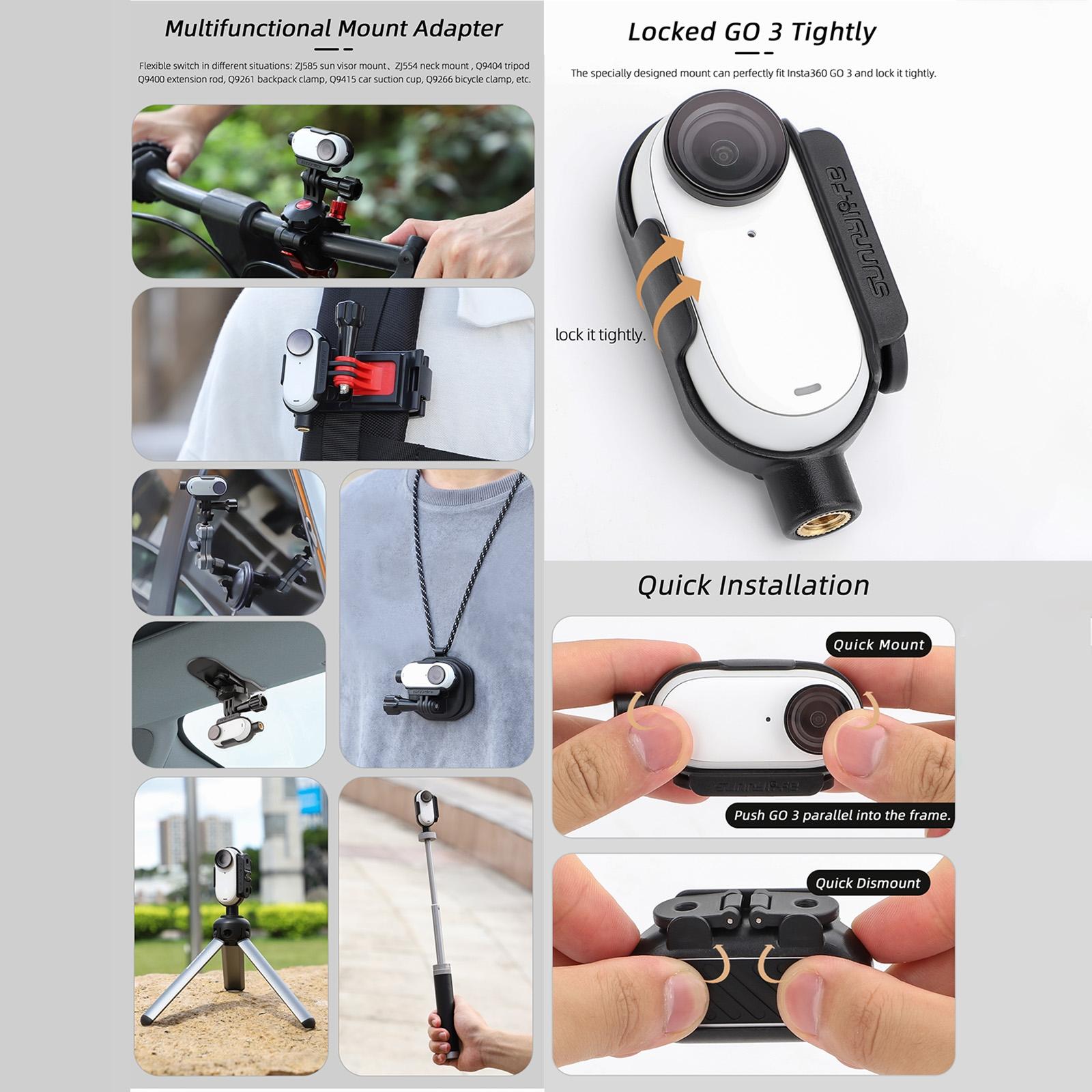 This protective frame cage and mounting brackets are designed for the Insta360 GO 3, providing versatile shooting options and expanded compatibility with various accessories. The foldable binaural design offers user-friendly operation, making it suitable for different shooting scenarios and environments.