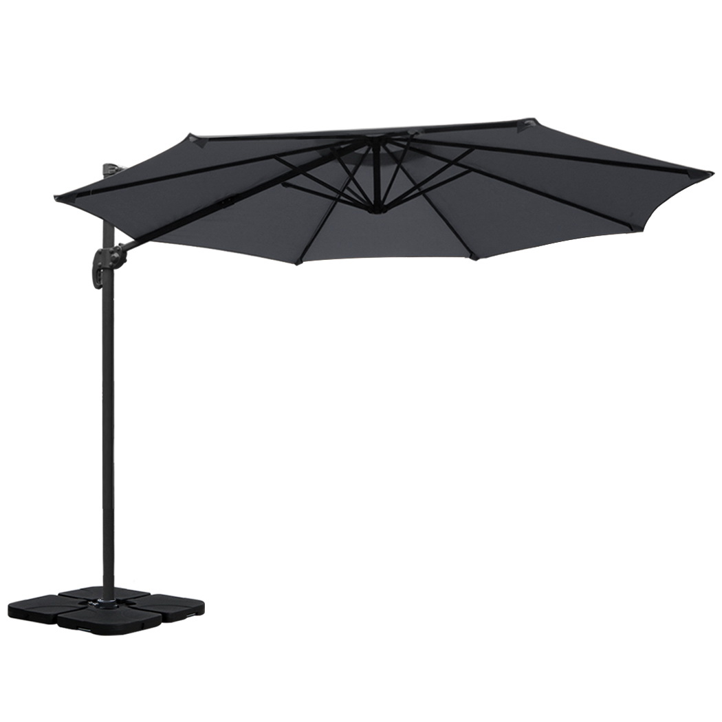 Instahut 3m Outdoor Umbrella w/Base Cantilever Beach Roma 360 Degree Tilt Charcoal