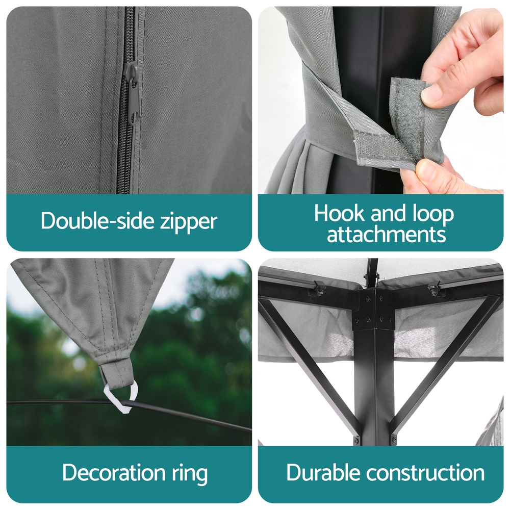 Instahut Gazebo 3x4m Canopy Outdoor Steel Frame Patio Tent Curtains Marquee Grey