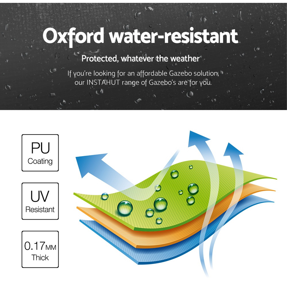 This pop-up gazebo provides a quick and convenient outdoor shelter solution suitable for various occasions such as markets, sporting events, camping, and outdoor gatherings. It features a large coverage area with durable materials designed to offer UV and water resistance, ensuring protection from the elements. The frame is constructed from sturdy steel with adjustable height settings, making setup and transportation easy and efficient.