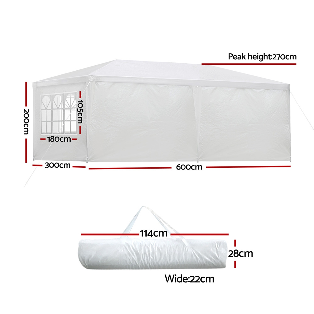 Instahut Gazebo 3x6m Marquee Wedding Party Tent Outdoor Camping Side Wall Canopy 6 Panel White