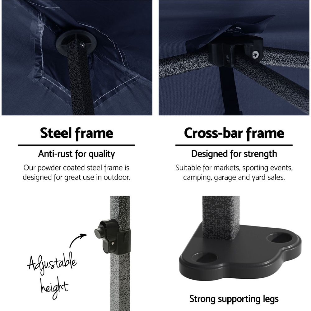 Instahut Gazebo Pop Up 3×4.5m w/Base Podx4 Marquee Folding Outdoor Wedding Camping Tent Shade Canopy Navy