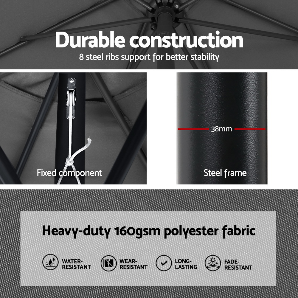 Instahut Outdoor Umbrella 2.7m Beach Pole Garden Tilt Sun Patio UV Charcoal