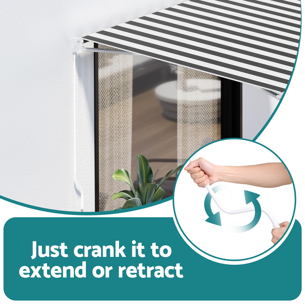 Instahut Retractable Folding Arm Awning Manual Sunshade 5Mx3M Grey White