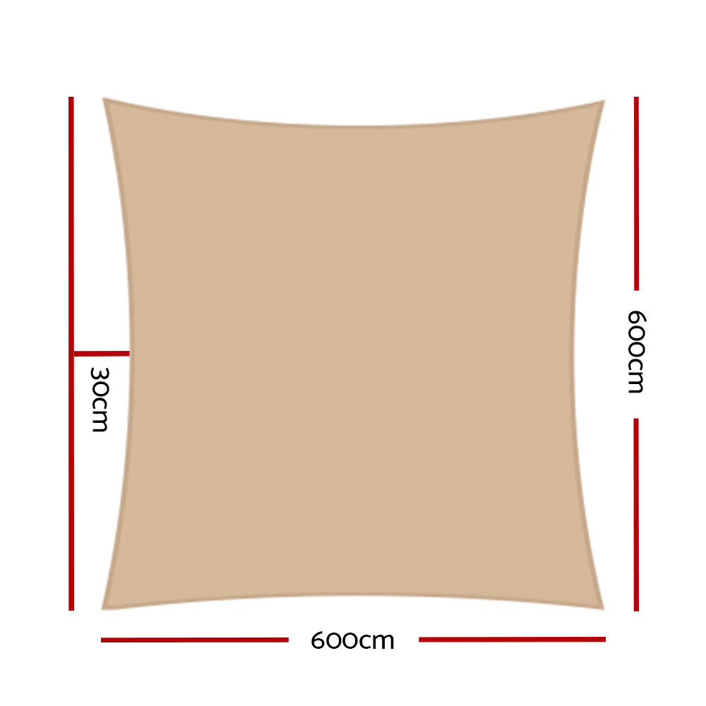 Instahut Shade Sail 6x6m Rectangle 185GSM 95% Sand Shade Cloth