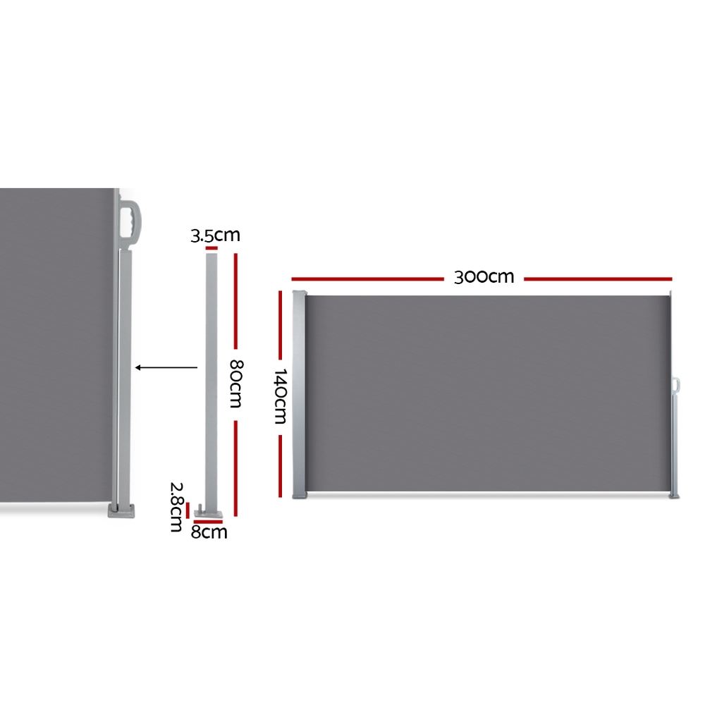 Instahut Side Awning Sun Shade Outdoor Blinds Retractable Screen 1.4X3M GR