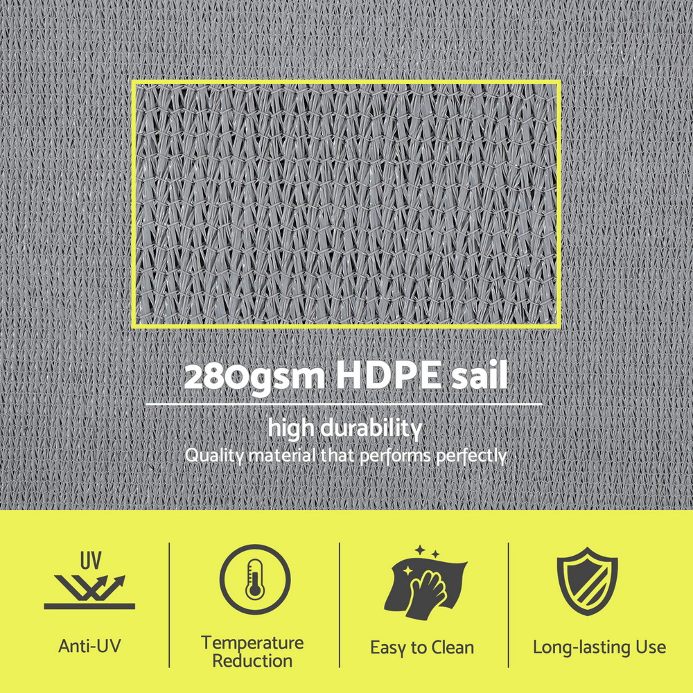 This shade sail is designed to provide a durable and effective outdoor covering. Made from high-quality, breathable polyethylene fabric, it offers excellent UV protection and weather resistance, making it suitable for various outdoor settings such as decks, patios, and pools. The shade sail features sturdy components to ensure long-lasting performance and safety.