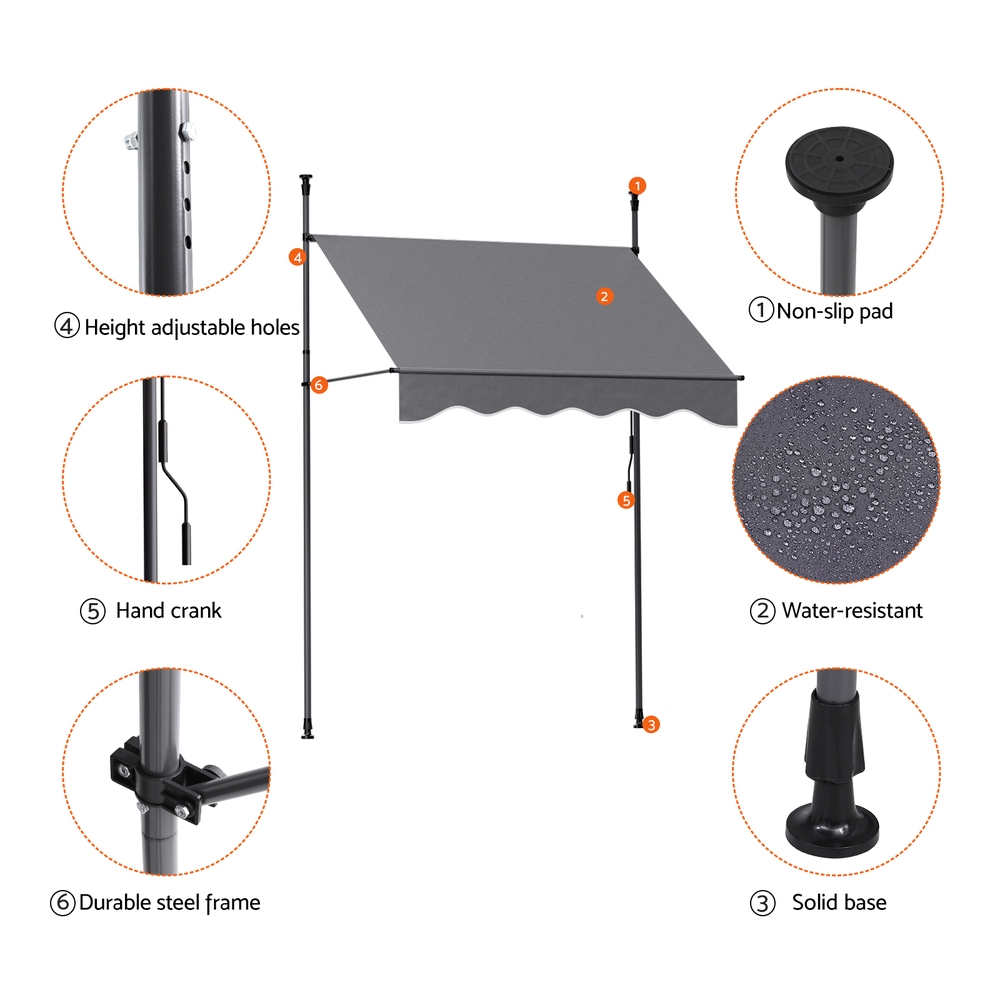 Instahut Window Fixed Pivot Arm Awning Outdoor Door Canopy 2X1.8M Grey